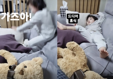 A picture released in running a lot of fun on the sofa and contained images of daughter idaeun.Laugh up over the sofa again and lying as if less than tired." Finally, the rest is the yunnamgi.- You hear me!" Picture, appropriate moment for the laugh.