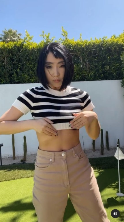 Gong Min-ji is wearing stripe crop T-shirt and beige pants.In particular, the heart mit eondeobup that caught the eye in (underboob) fashion.