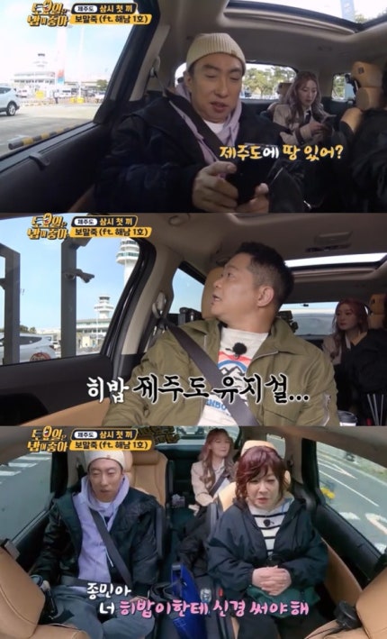Park Myung Soo Hyun, was practical jokes, "land in Jeju Island?" and "Jeju Island hibabinen't said I can't walk the land." weighed in high.In nosayeon old bachelor is Kim Jong-min, leave a tip "you have to be careful with hibap" and "Let's be friends." is Kim Jong-min, expressed high affinity right away and laugh.
