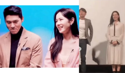 Son Ye-jin, and Hyun Bin is one image in particular, with production press conference of the film 'negotiations' with Hyun Son, come up in the step back to the stage during the interview, Son Ye-jin, who continue to steal a glance and to keep a straight face.