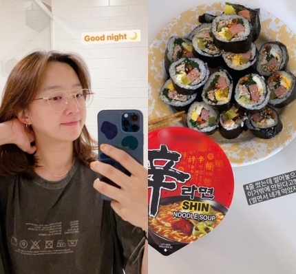 A picture released that Han Yoo Ra to move in the eating kimbap and instant noodles and for his two daughters in Hawaii, which is contained.