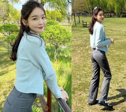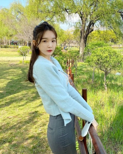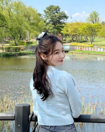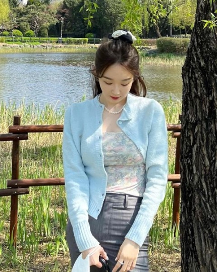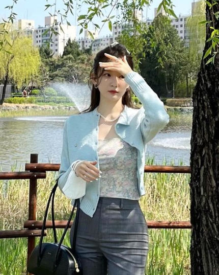 The lake is behind the spread of taking pause, Kang Min-kyung by a tree.Kang Min-kyung, who a blue cardigan and gray trousers on the flowers on the match.Kang Min-kyung of unique fashion sense is definitely notable in the spring full of styling.Kang Min-kyung lovely beauty and superior Height is out.