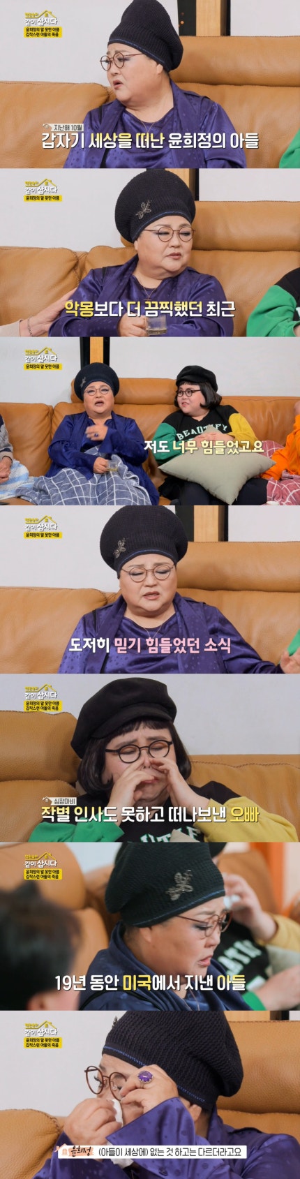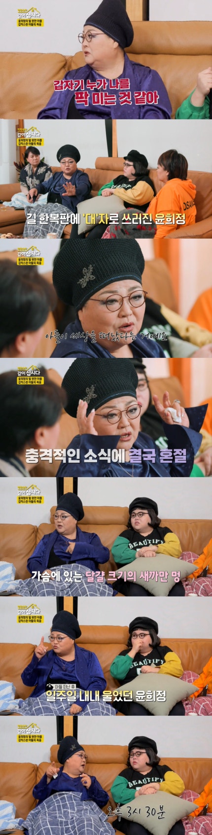 The lost her memory, " because here, but there is no laughing matter these days I smile.You're laughing too good, '', laughed.He said, "It was too hard a month.", and at that time, Kim Hye Eun Yee is "I feel too sad, my brother is more sad." toward the high above. The son of a lost her memory, suddenly, died from a heart attack last October.Tears in the story of lost her memory is "don't believe you." and son.