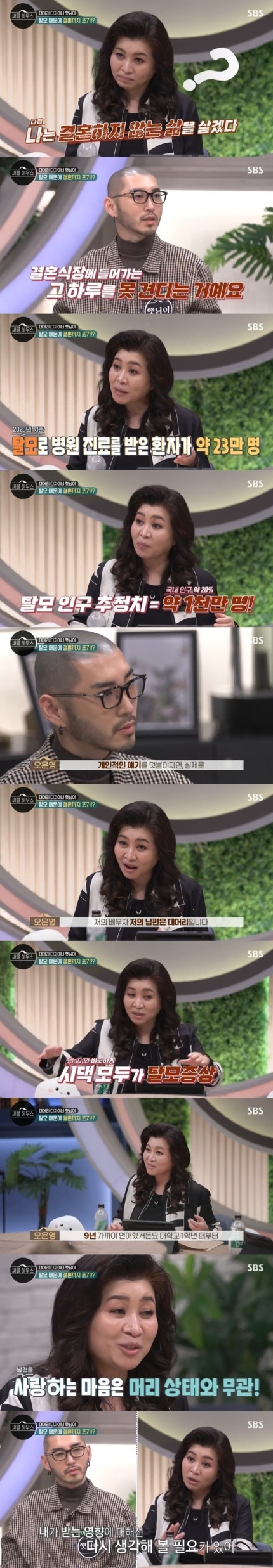In Oh Eun-young, said, of course I'm stressed out.Seems to be because few, not many.However, hair loss, about 23 million people looking for a hospital.I don't come to the hospital one way or another, statistics estimated 10 million, all people who are not caught, explained.