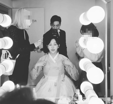 Hanyoung and Park in pictures released on that day in working on their wedding photos.Hanyoung's Park behind the sitting in front of dressing table mirrors selfies, to record memories.Hanyoung added that he "Is it a blind eye was a joke not be pretty fun just gidaryo".