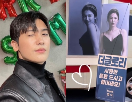 Song and bakyeongsik the same agency in a.The bakyeongsik sent Kim Eun-sook writer's new coffee for Song, for the 'The Glory (the glory)' series.A wonderful sense of honor are the highlight of a scene.