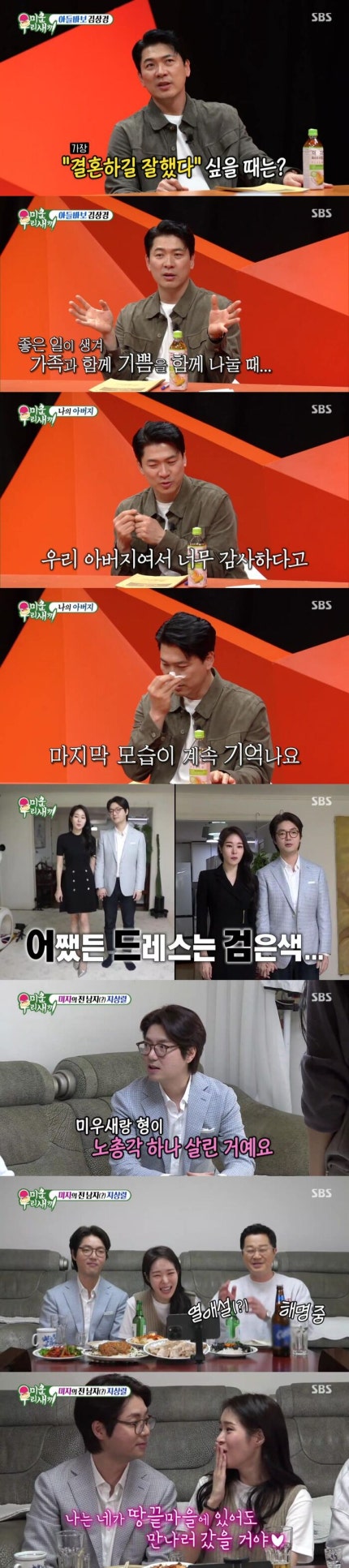 Broadcast on that day, appeared Kim Sang-kyung is a wonderful actor, following last week showed the family and love.Kim Sang-Kyung asked, 'When do you think That's nice of you to get married.' and said, "a good thing when sharing our joy with a family think a good marriage."And not about her two sons, " and there are thirteen saljjari and Seven years later a life have a six-year-old.Oldest son is my father is Hangul Day at school, I did not know that something that I screen in 'King Sejong, '' data to see and All right, the official said. At the same time was the baby " I am there are many apart.Late father have me on my memory always sleep with the thigh.I've explored now, and went into the 'My father is the feeling u' between his legs with a second child in her arms.So lovely and good.I now know my father. " son showed an idiot.
