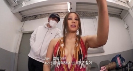(ek The newcomer is sports news reporter) 'in Seoul, Korea' Lee Hyo-ri funky costumes for photo shoot with her husband, Lee Sang Soon and eyes narrowed as a friendly call.