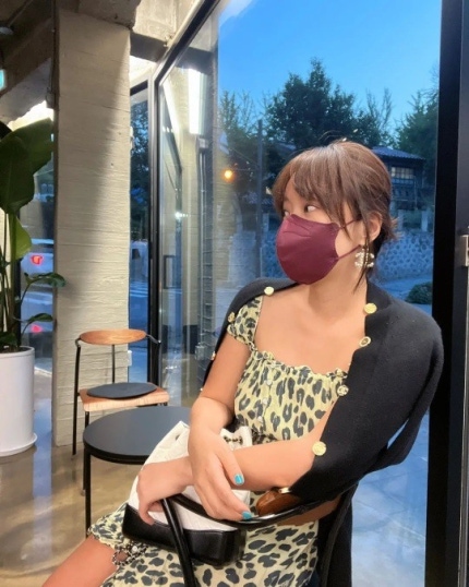 Hwang Jung-eum the photos released is airy and Chanel earrings a leopard printed faux fur miniwonpiseureul the Chanel of taking a break in the cafe with a cardigan.