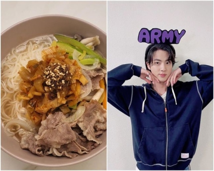 Bangtan Boys, 29, is gone public with their own photo through Instagram, late night snacks.