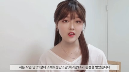 Kkuming a YouTube channel in June last year and posted the video first.He said "small cell at the age of 21 million of ovarian cancer be diagnosed with Stage 4) (hoegwiam" and "a perfect cure is impossible to achieve and barely lives due to cancer of about six months to one year.".V logs public, and we hope our readers daily basis is then kkuming and communication.