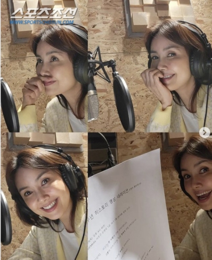 Shin Ae-ra for in the picture in a recording studio for gift aid showed.