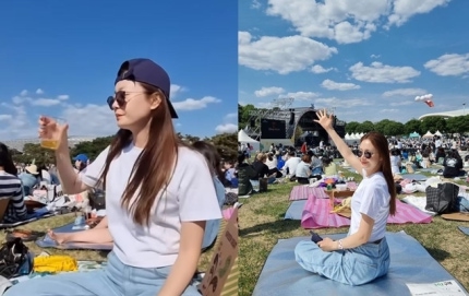 A picture released by jeonsomin attended an outdoor festival has a great moments.Comfortable clothes and beer among citizens, such as free can experience the life.