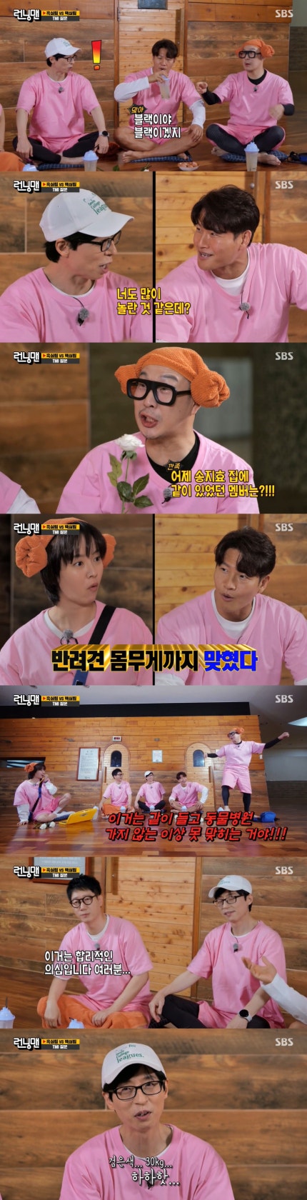 In addition, Song Ji-hyo ballyeogyeon the weight? '' Kim "I think about thirty kg", and that the question and answer.In the end, Ji Suk-jin said, you've been together?This is a reasonable doubt. weighed in animal right, can't unless I go to the hospital as "Haha, and said,".