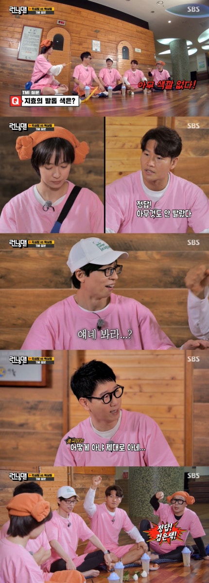 Over the past 22, televised sbs 'Running Man' : Yoo Jae-seok, Ji Suk-jin of five original member, Kim Jong-kook, hah, Song Ji-hyo Song Ji-hyo of the 'baekssim' team conducted a quiz tmi.