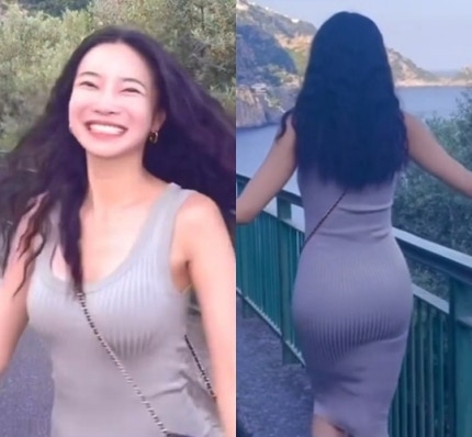공개된 사진 속 김윤지는 몸매가 드러나는 밀착 원피스를 입은 채 걷고 있는 모습.In another picture, a couple having a romantic times of can be found.