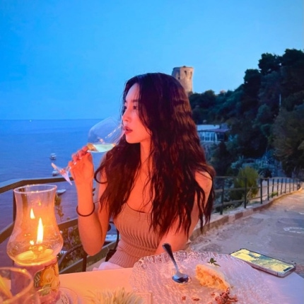 Kim Yun-ji his 1st through Instagram, " I have ever seen the most romantic dinner.This is Italy's Amalfi coast along with the words, to a certification number of pictures public.