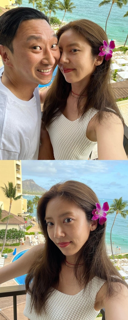 Son Dam-bi authentication picture also playful mood of their honeymoon to Hawaii to sns the left eye.A resort atmosphere is strong, I have flowers visible emerald sea is Sohn Dambi, posing in a back to the head of eye contact.