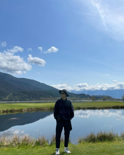 A picture released in blue skies and lakes, fields with Choi Woo-shik leaving a picture of sending a message.Casual clothes that He wore sunglasses, hats, in the sense 'boyfriend look' eye by showing off.