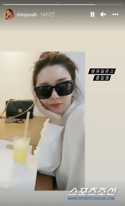 Shin Joo Ah an actor's recent personal story along with the words "yum-yum" ; "Intake of fruit juice" to Instagram photos posted.