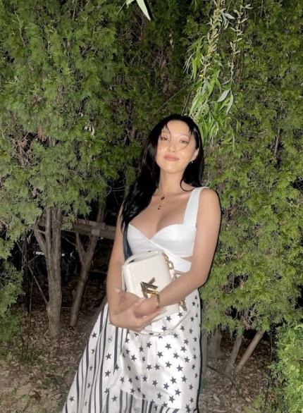 Published in the picture holding bags of being a white dress.Company was eye-catching with flashy features and tan.In particular, lean figure who had nothing to a source of wonder.