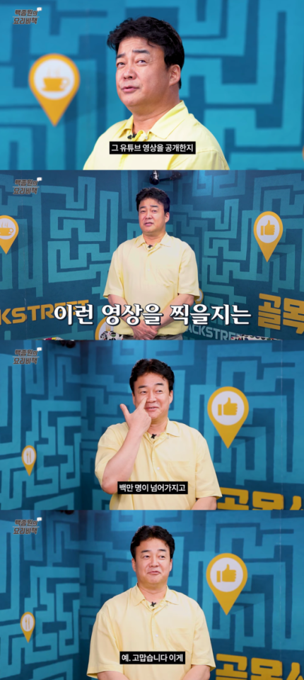 Baek Jong Won 'Baek Jong Won's dish up one's sleeve' channel is topped one million subscribers in just two days.Over the past 11 days after posting the first video about 300,000 subscribers in just six hours, broke in two days, Baek Jong Won's continuing strengths, once again to exceed 100 million real surprise.Baek Jong Won channel opening of two million subscribers in one month mark and more than 5 million subscribers in two years.Three years to be on a roll now, the current 539 million subscribers.Recently unveiled by the content, and a lot of loved.