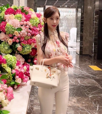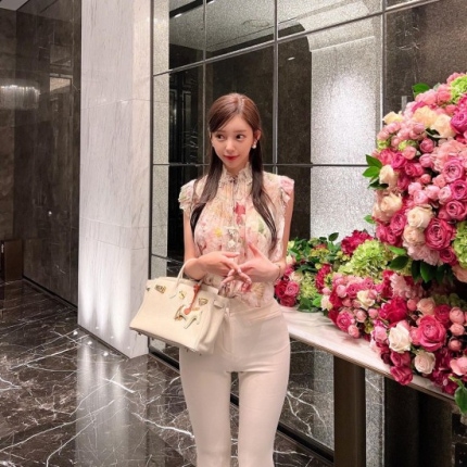 And kitty in the picture writer, who was released inside colorful flowers in the background a figure, leaving a injeungsyatShe wear pants, noodles in a sleeveless blouse and colorful and beauty of the pelvis, making fans wonder.