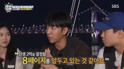 이날 김영하와 멤버들은 요트 위에서 '내 인생은 지금 몇 페이지가 왔느냐'에 대한 이야기를 나눴다.