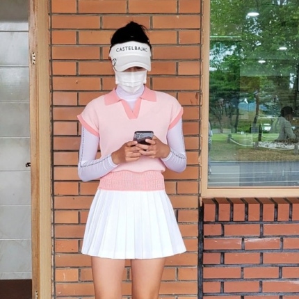 Jia is in the picture that is public golf pretty pink costume and posing in a field is sending a message.Zia's exclamations. to see 8deungsin the amount of beauty.