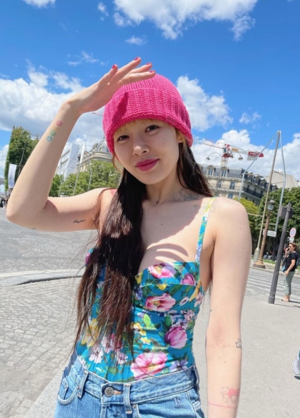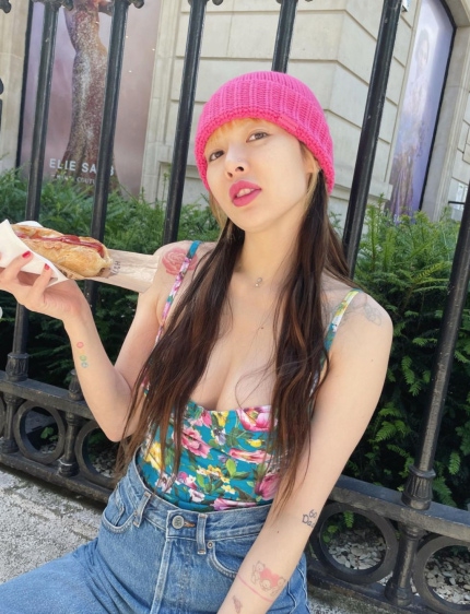 Hyun-ah received in the picture match seems that the colorful swimsuits, which felt the pants.Also showed images and one natural pink color here, Vinny.