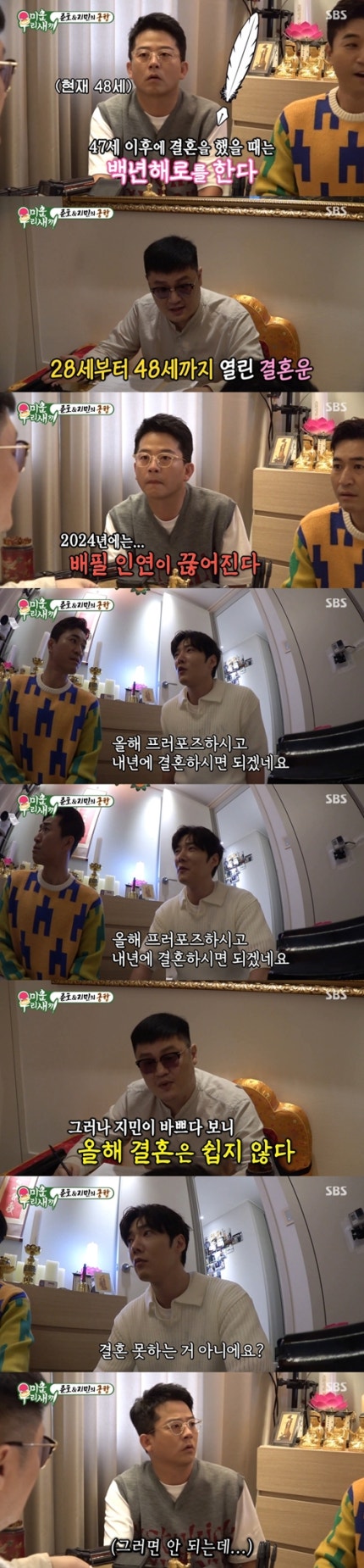 Kim Joon Ho is gimjimin asked 역술하다 translate and said, time's proposal to be this year.Gimjimin was busy wedding is difficult, said this year.Choi Jin-hyuk and Kim Jong-min are recommended to get married next year.