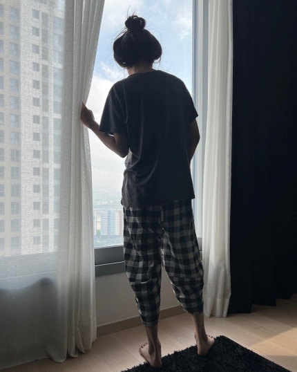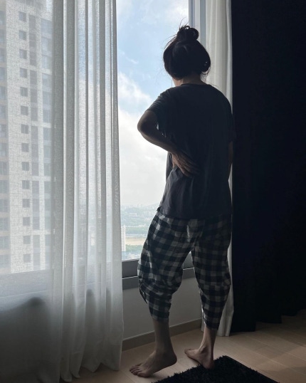 Kim Tae-hyun, a spokesman for her husband in the pictures are taken that showed the back of the mija.A window displaying a scene outside the home looking around seems to be mija" Everyone's going home at this time?"라면서 높게 질끈 묶은 헤어스타일, 큰 티셔츠 등 미자의 네추럴하면서도 리얼한 뒷모습이 고스란히 담겨있어 웃음을 안긴다.