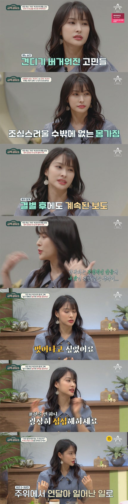 Park Gyu-ri, " I met don't want to The stories are a lot.And good articles as a bad issue, rather than issues a lot.I frame is rather that charges at the center of all the articles.I was called names and even while sitting still.Why did that I wouldn't talk so bad.어떤 순간순간이 내탓이 되는 순간이 오더라"라고 담담하게 이야기했다.