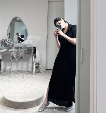 He wore black loose dress in the selfies and pose for pictures.In particular, the early stages of pregnancy the Rouge to a ship, comfortable fit and attracted attention.Also, current and brei less, take a shower to send out wedding invitations, busy that there's an impending marriage.
