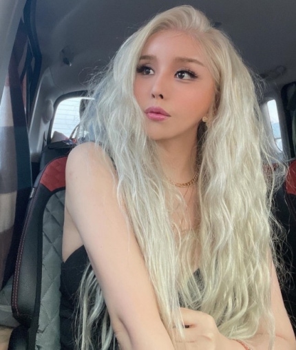 Ha in the picture was released from inside the vehicle of hairstyles and sexy blonde with personnel and the fans were sending a message.Ha's body lean is also the robbery.