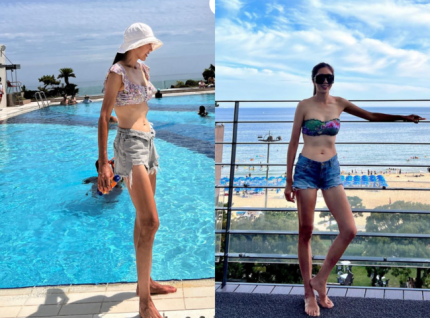 Public posing in front of a swimming pool that looks the picture, he naturally has the sea from floods.Amazing Hakdari legs and ribs are enough to dent yeoriyeoria the astonishment of reveals an athletic build.