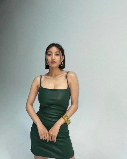 JiHyo, in particular was highlighted by line figure being leather dress also boasts a body volume, on view at one swoop.
