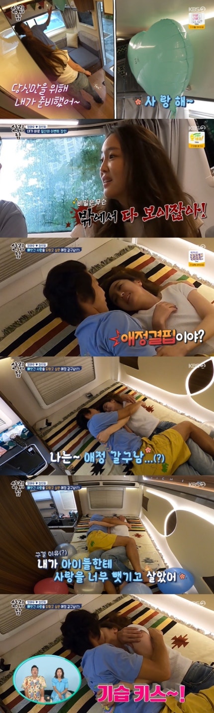 Jung Tae-woo was "We both own space." with the words ‘I love you.’, for balloon decorations.Jang In Hee Jung Tae-woo, expressed dissatisfaction with "show off everything outside.", but the curtains that he intended to and embraced his wife.