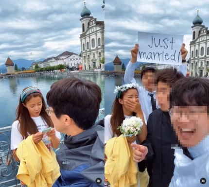 Lee dominated the very surprised by the proposal of marriage being a bride in a flash and laughed.Lee "falls in love with Switzerland.", and that new bride, while traveling, Switzerland, beautiful new bride of a shy smile, and just fall into the atmosphere of Switzerland.