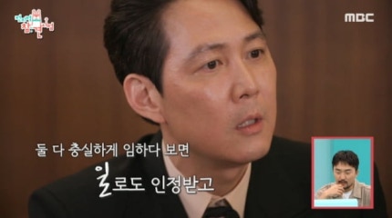 Jung Woo-sung and Lee Jung-jae, is a drop the longest time, said a month and a half.Jung "busy long sometimes I haven't seen each other.", and most haven't seen a long time period "a month and a half" he said."I would like to see if you away?" is Lee Young Ja said.Lee Jung-jae, responded, "I'm afraid I?".