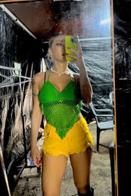 Honey Jay is net the photos released of green in top line of yellow, hot pants and left a photo in front of mirror.Chest line is produced, and Honey Jay's sexy charm is more outstanding.