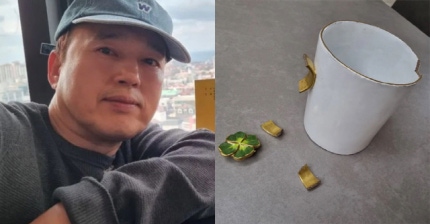 This picture shows a handle is broken cup contained in the disastrous appearance.The glass company, that was sent to a first home life as a housewarming gift to the gimgwanggyu.Last June, televised mbc 'live by myself.' gift from the scene that also disclosed.