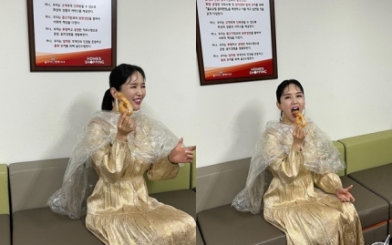 Twisted bread stick and wearing a plastic in the waiting room in photos released contained images of the Jang Youngran and eat.Receiving support, struggling to keep the dress and makeup look.A pleasant routine of the Jang Youngran fans had grins.