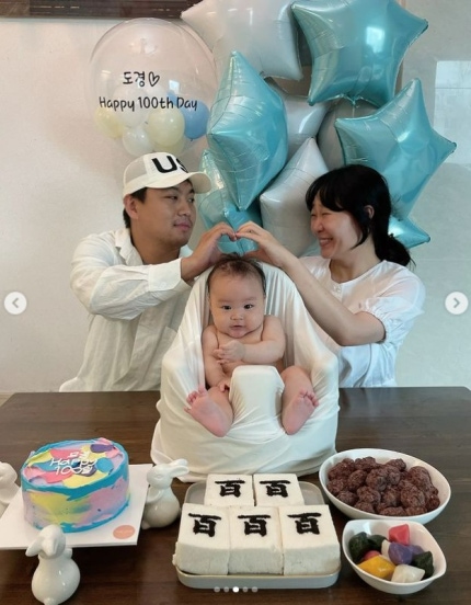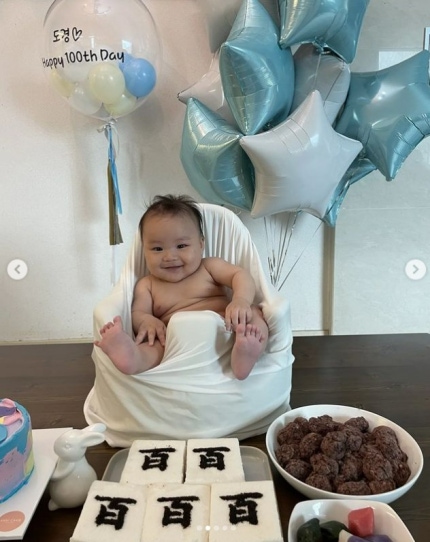 Which is not prize the son of Jung Joo Ri in photos released baegil been served.My son is sitting proudly at the front of him.정주리의 아들은 백일상이 마음에 드는지 활짝 웃고 있어 보는 이들을 덩달아 미소 짓게 만든다.