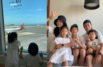 And Sung-eun Jung Jo-gook, and their three children and family photos public, and is known as "I would like to, a week to go in the wall #, Jeju-si, Jeju-do, Korea _ ssung" and said a happy family life of their journeys.