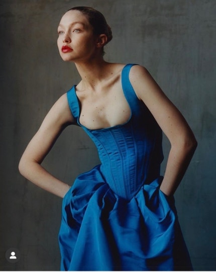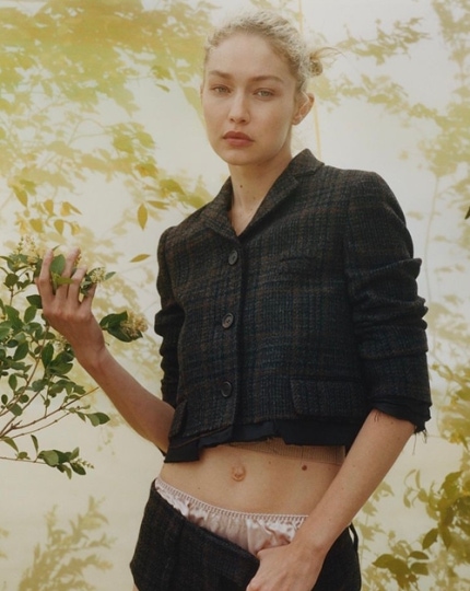 Hadid belly flab fashion's exposure of a show off my body without support in the picture.