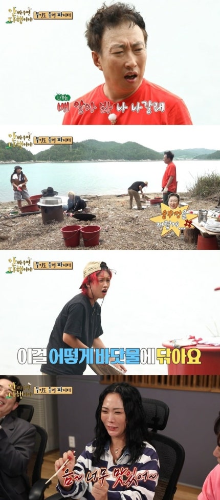 Park is Thursday, five leaders 'seuupa' and went to an island with him.배에 오른 순간부터 박명수에 지지 않는 강적 포스로 그를 꼼짝 못 하게 만든 리더들은 넘치는 인간미와 예능감을 동시에 선사했다. Park Myeong-su sunangi of the sea from 'My hands naejap' began.He has leaders haerujil with assault but unable to pay any or all sensitive to reveal.On the other hand, leader of the conch, cans and naively we enjoyed playing in the water is 5, the Park of the storm caused.