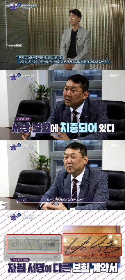 박수홍 측에 따르면 자필 서명이 아닌 계약서도 발견된 것은 물론 법인으로 가입된 2개의 보험은 해지가 쉽지 않아 현재까지도 해당 보험을 유지하고 있다고.