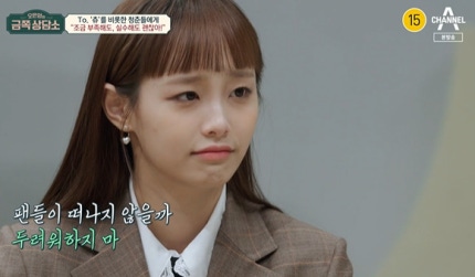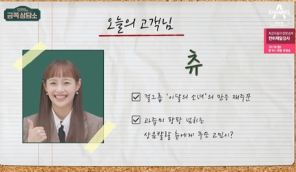 또 상담 나오기까지 걱정이 됐다는 츄는 "다들 커다란 고민을 들고 방문하는데내가 이런 고민으로 나와도 되나 싶었다 ,데뷔4~5년차가 벌써 힘드냐고, 고민에 공감을 얻지 않을까 걱정도 됐다"며 조심스럽게 말했다.