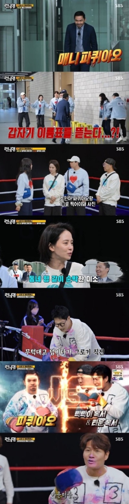 Manny was decked out with a ‘a fighter´s purse’ race with the pakoeao is broadcast on that day.사전에 파이트 머니 획득을 위해 미션을 진행했던 멤버들은 파퀴아오와 만나게 되자, ‘팬심’을 드러내며 그 어느 때보다 ‘하이텐션’을 발산했다.However, Pacquiao is abruptly terrorized members met Yu Jae-seok and open the tag on the four years. Yang Se Chan, jeonsomin a label tore up to Pacquiao is less than exciting.It's nice to see you again. " a big smile and greeting members to formally welcome.특히, 파퀴아오는 "직접 출연하고 싶다고 얘기했다.My family and children are really enjoying the ‘Running Man’ reveals the extraordinary Fan's heart, and We, too.